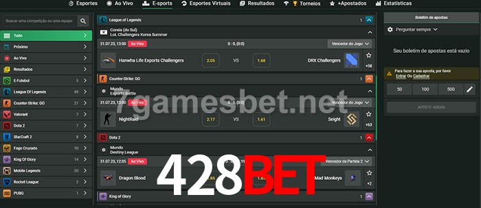 O 428bet oferece uma grande seleção de opções de apostas em e-sports com probabilidades competitivas